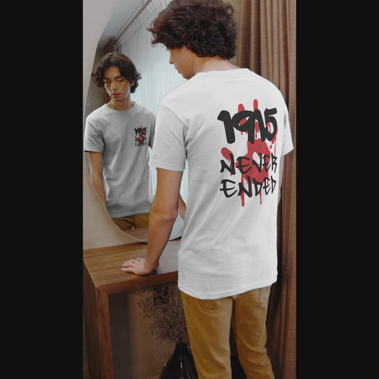 Ehren und Erinnern Sie mit unserem kraftvollen '1915 Never Ended' T-Shirt, einem tiefgründigen Statement-Stück, das darauf abzielt, das Bewusstsein für den Sayfo Völkermord und die Geschichte der Suryoye zu schärfen. Dieses eindrucksvolle T-Shirt zeigt auf dem Rücken ein markantes Design: die Jahreszahl '1915' kühn in Schwarz gedruckt, gefolgt von 'NEVER ENDED' in einer verwaschenen, tropfenden Schrift, alles akzentuiert mit lebhaften roten Blutspritzer-Grafiken. Es ist mehr als nur Kleidung; es ist eine tragbare Hommage und ein Gesprächsanreger, der sicherstellt, dass die Erinnerung an den Sayfo Völkermord weiterlebt und seine Lehren niemals vergessen werden.